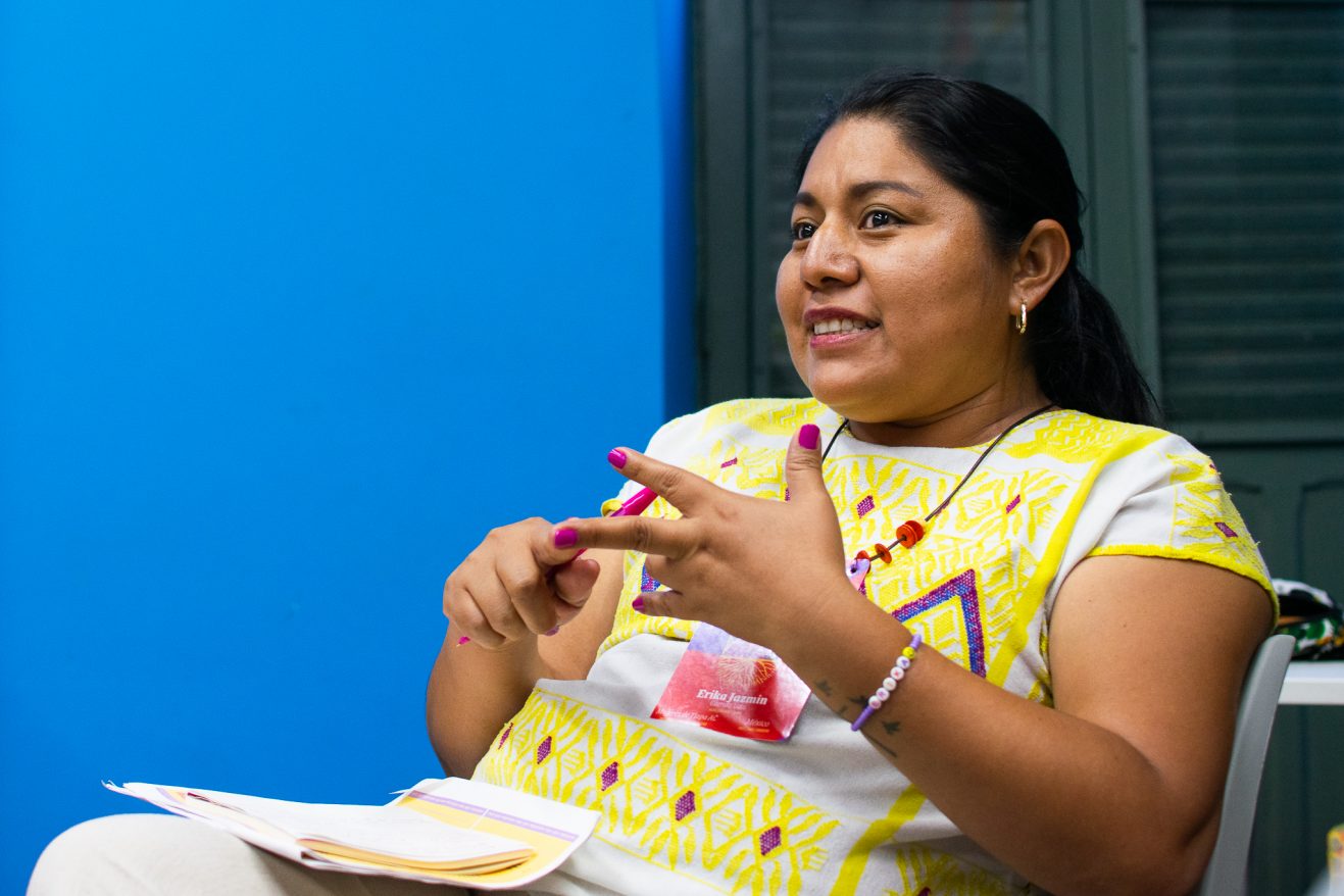 Trabajamos en dos ejes principalmente. Uno es la prevención de la violencia contra las mujeres y el segundo es incentivar y apoyar a las mujeres indígenas para participar en política. Queremos que lleguen a los espacios de toma de decisiones. Trabajamos desde sus propios territorios, respetando sus lenguas maternas, y brindándoles herramientas para que conozcan sus derechos. Que sepan que no están solas. Si viven violencia política, que sepan dónde recurrir, dónde denunciar. Porque los gobiernos dicen que no hay datos, que no pasa nada, pero la realidad que vivimos las mujeres en México, y más las mujeres indígenas, es muy distinta.
